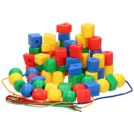 Verzamel de mooiste rijgkralen en rijg ze aan het koordje. De rijgkralen zijn extra groot zodat ze goed zijn vast te houden door kleine peuterhandjes én veilig zijn om mee te spelen. Het maken van een rijgketting helpt bij het ontwikkelen van de concentratie, oog-hand coördinatie, fijne motoriek én creativiteit. Bedenk mooie kleurpatronen of maak een dierenketting met speciale dieren rijgkralen.