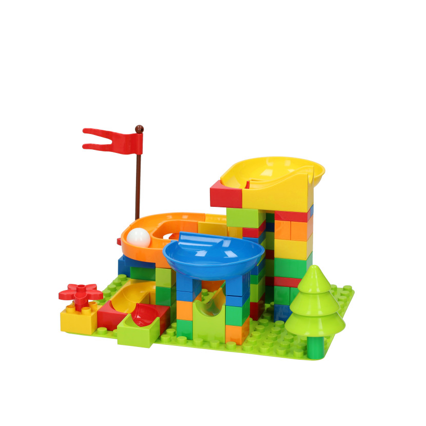 Bouwen, rollen en ontdekken! Met deze vrolijke bouwset van 101 onderdelen maken kinderen hun eigen kleurrijke knikkerbaan. De set bevat allerlei vormen en bochten waarmee de knikkers steeds weer een verrassende route afleggen. Inclusief een stevige bouwplaat en duidelijke instructies om direct aan de slag te gaan.