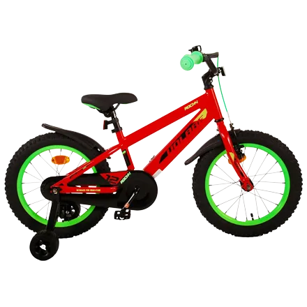 Leeftijd en kledingmaat zijn goede indicatoren om te beslissen welke maat kinderfiets goed is. Bij een 16 inch fiets zijn de volgende afmetingen van toepassing. De hoogte van het frame is ongeveer 25,4 centimeter. Kies voor deze maat kinderfiets als de lengte van je kind minder is dan 105 centimeter en de binnenbeenlengte minder is dan 54 centimeter. Kijk na aanschaf ook altijd even goed hoe je kind op de nieuwe fiets zit. Tenminste één voet dient met een bijna gestrekt been te rusten op het onderste pedaal. Koop nooit een fiets die eigenlijk te groot is. Het is niet fijn als het kind niet met de voeten bij de grond kan. Gelukkig kunnen de meeste kinderfietsen in hoogte versteld worden. Neem bijvoorbeeld deze stoere Volare Motorbike Fiets.